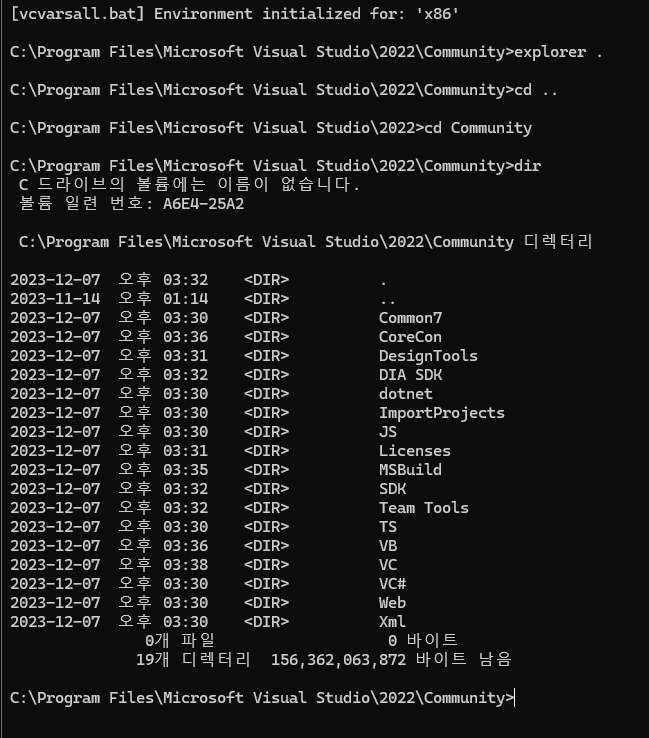 이를 통해 탐색기 경로 안에 모든 내용을 콘솔창에서 볼 수 있다