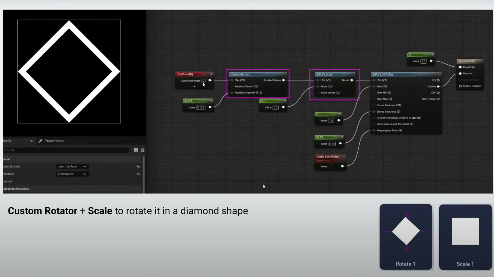 시간을 반복해야 한다는 것을 알게 됩니다. 그래서 게임 시간을 가져와 속도 매개변수로 곱한 다음 Frac 노드를 사용합니다. 아니면 번역, 회전, 스케일링 같은 기본 변환을 해야 합니다.