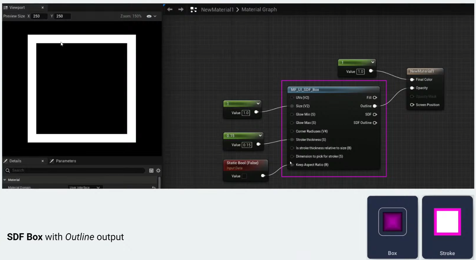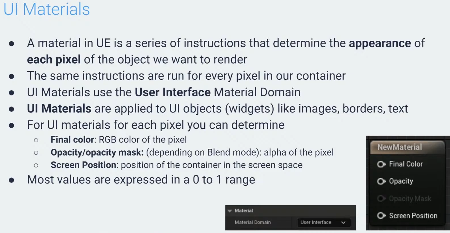 What makes a material a UI material is that we use the user interface material domain, which is what you can set when you create or when you have a material open.