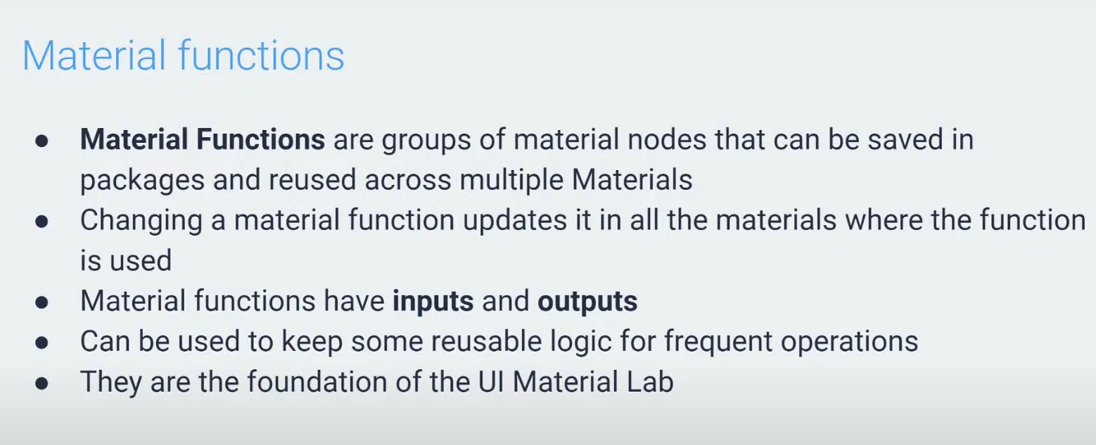 So you don't have to redo the same operation. You just drag a material function, and it does the thing for you. It contains the logic. It has inputs and outputs.