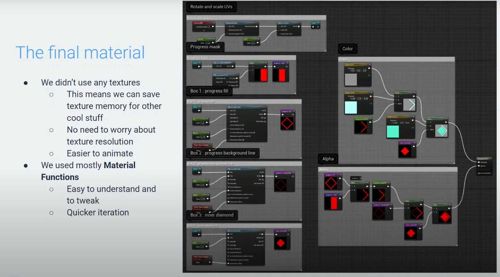 We use animations inside materials a lot in Fortnite because it's just more performant for us to animate more in materials rather than a Sequencer because it relies more on the GPU rather than the CPU.