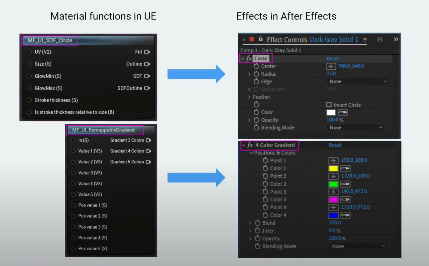 그들은 메시 위에 픽셀을 렌더링하고 있습니다. 그러나 UI 머티리얼의 경우, 우리는 위젯을 렌더링합니다.