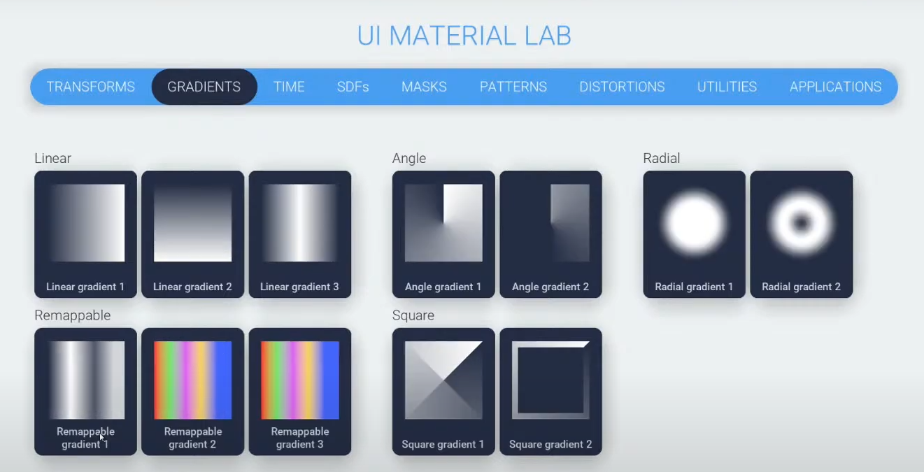 like translating, rotating, scaling. I need some gradients, like linear gradients, or radial gradients. But it's always the same combinations of nodes.