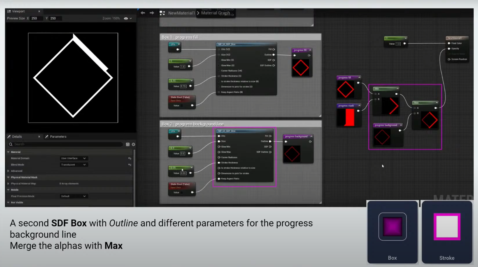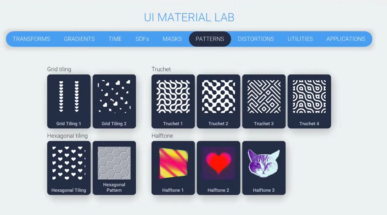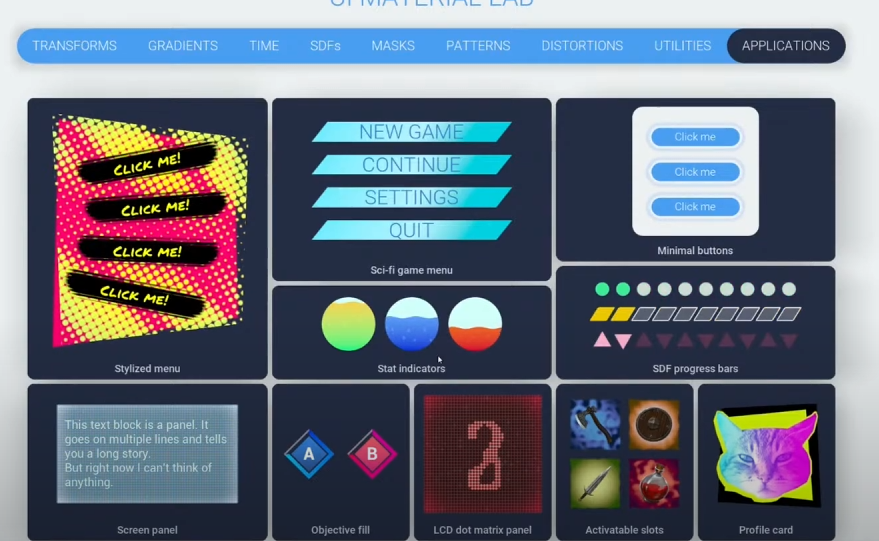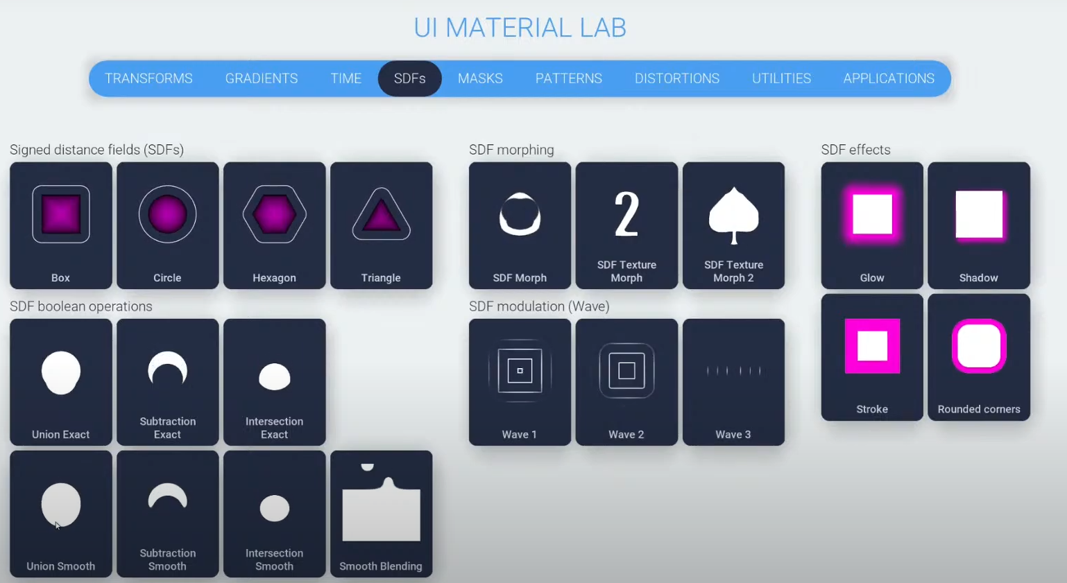 And this is just an overview of the SDFs that we made. I mean, that we added to the material lab. So we have the box. We have triangle, circle, and hexagon.