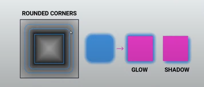 빛 효과를 언급했습니다. 그림자도 언급했습니다. 각 SDF는 스트로크 출력을 가지고 있으며 둥근 모서리를 가질 수 있습니다.