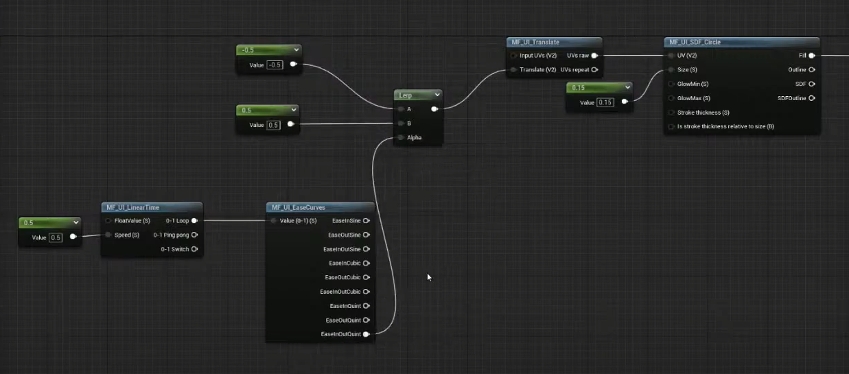 시간을 반복해야 한다는 것을 알게 됩니다. 그래서 게임 시간을 가져와 속도 매개변수로 곱한 다음 Frac 노드를 사용합니다. 아니면 번역, 회전, 스케일링 같은 기본 변환을 해야 합니다.