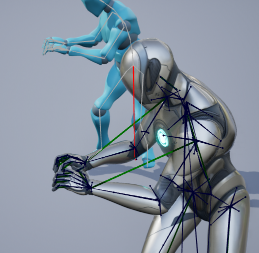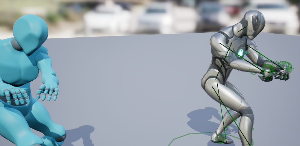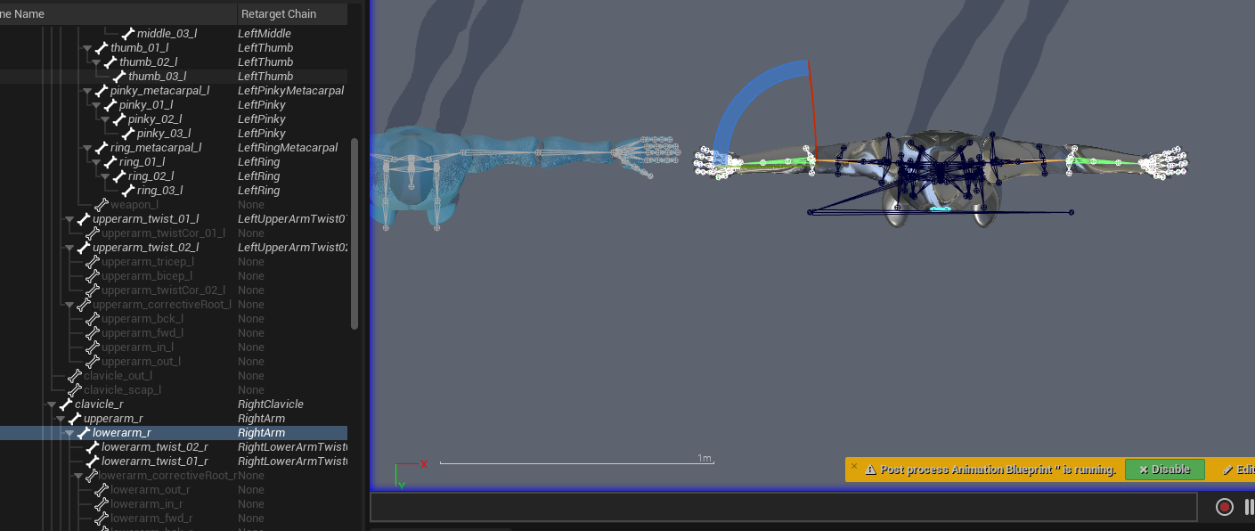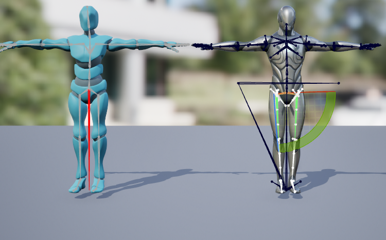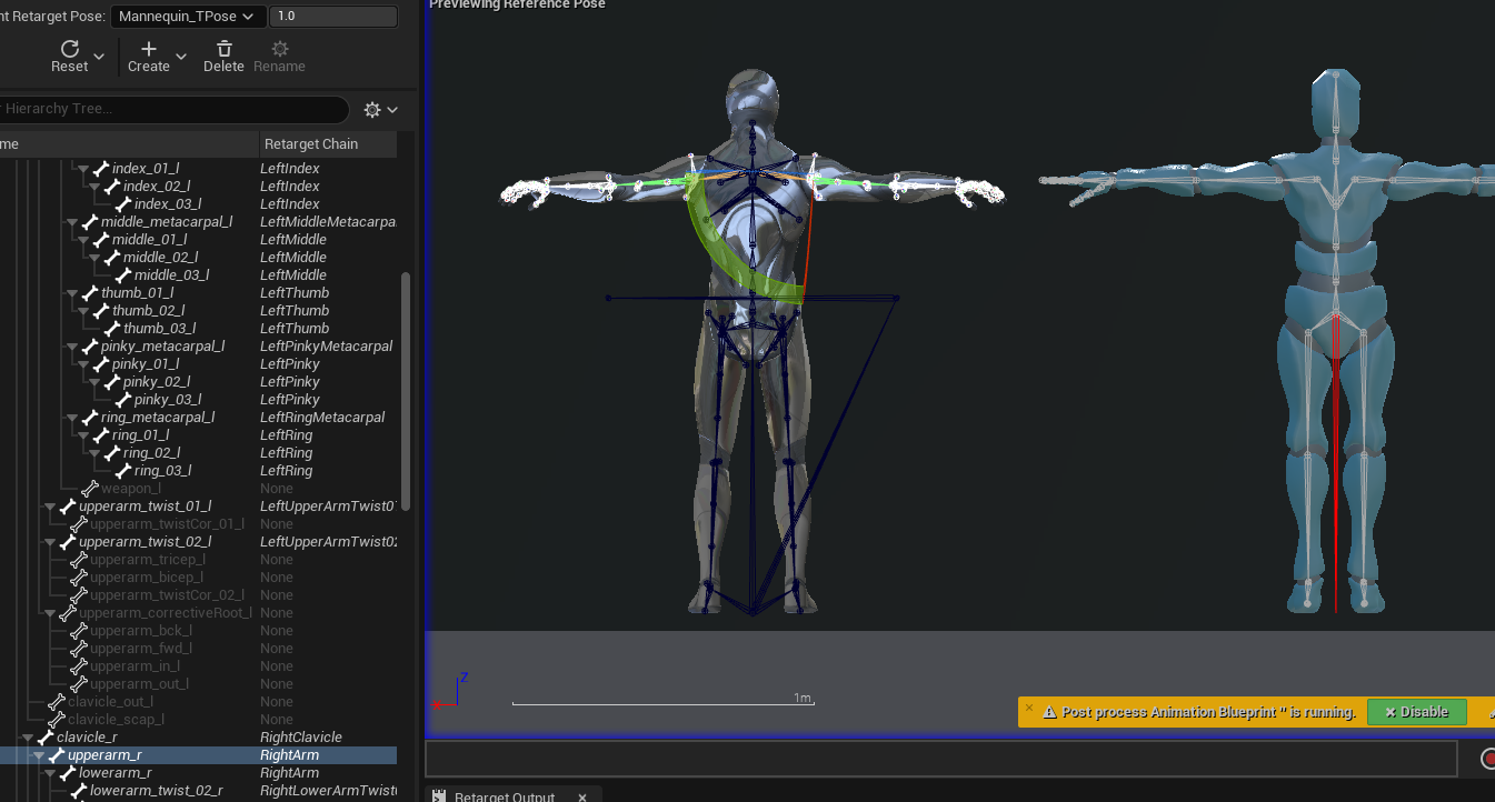 애니메이션이 재생되지만 위처럼 뭔가 이상하게 재생된다. IK 설정에서 무엇인가 잘못 된 것 처럼 보이게 되는데, 이 문제는 각 스켈레톤의 기본 포즈가 다르기때문이다.