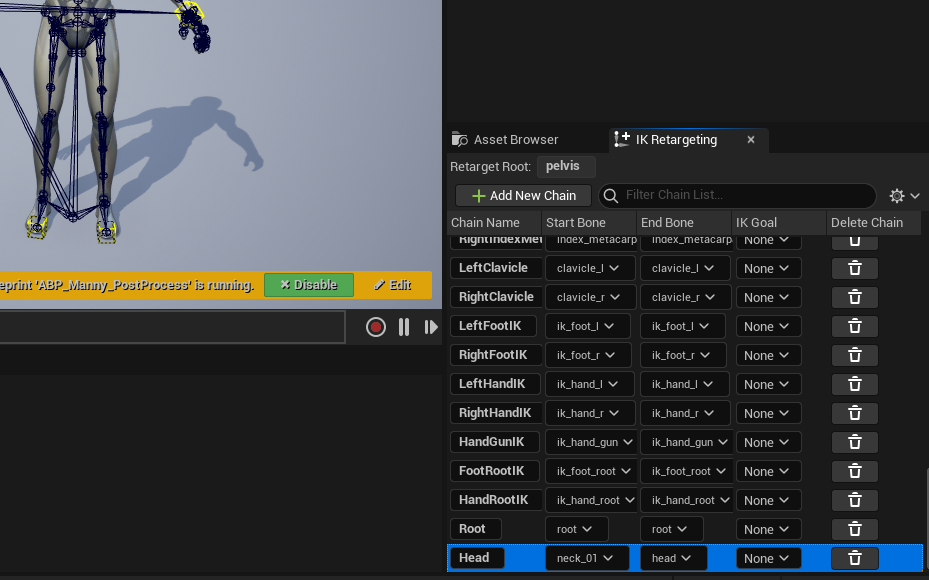 이름은 마네킹의 IK Retargetging 세팅의 이름을 그대로 적용해주었다.