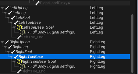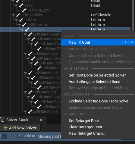 그리고 IKController를 적용해줘야한다. 컨트롤러가 필요한 부분에 우클릭해서 NewIKGoal->AssignGoal을 통해 컨트롤러를 추가하겠다.