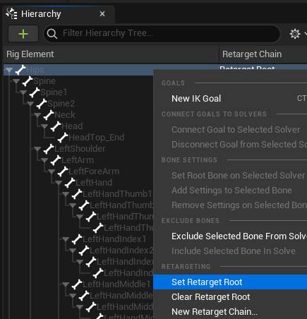 Hip을 Retarget의 Root로 설정해서 모든 리타게팅 정보의 Root가 되도록 설정한다.