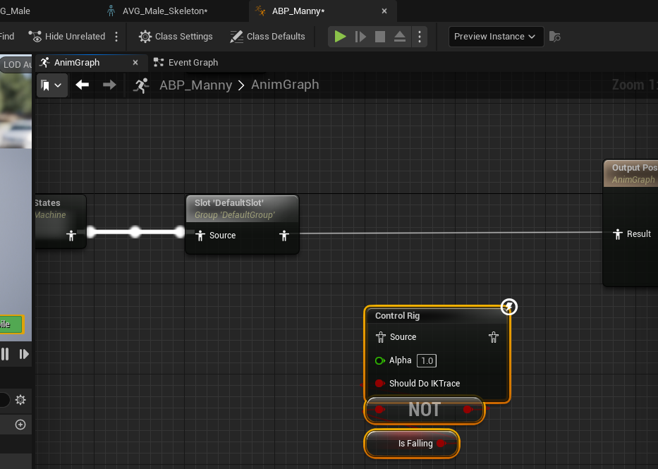 만약 ABP_Manny를 사용할 경우라면 다리만 안움직 일 수도 있다. 이 AnimationBlueprint에서 IK_Leg라고 하는 다리 IK기능을 실시간으로 사용하고 있기 때문인데, 꼭 이 기능을 사용할 필요가 없다면 제거해서 빠르게 애니메이션을 적용해보다
