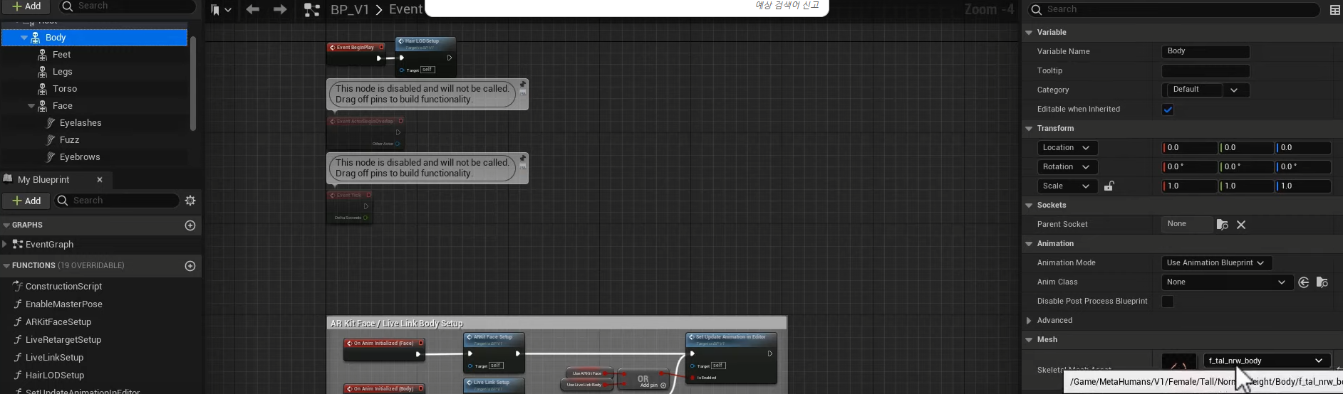 메타휴먼의 경우 어떤 바대를 선택하냐에 따라서 때때로 애니메이션 모션이 매칭이 안되는 경우가 있을 수 있기 때문에