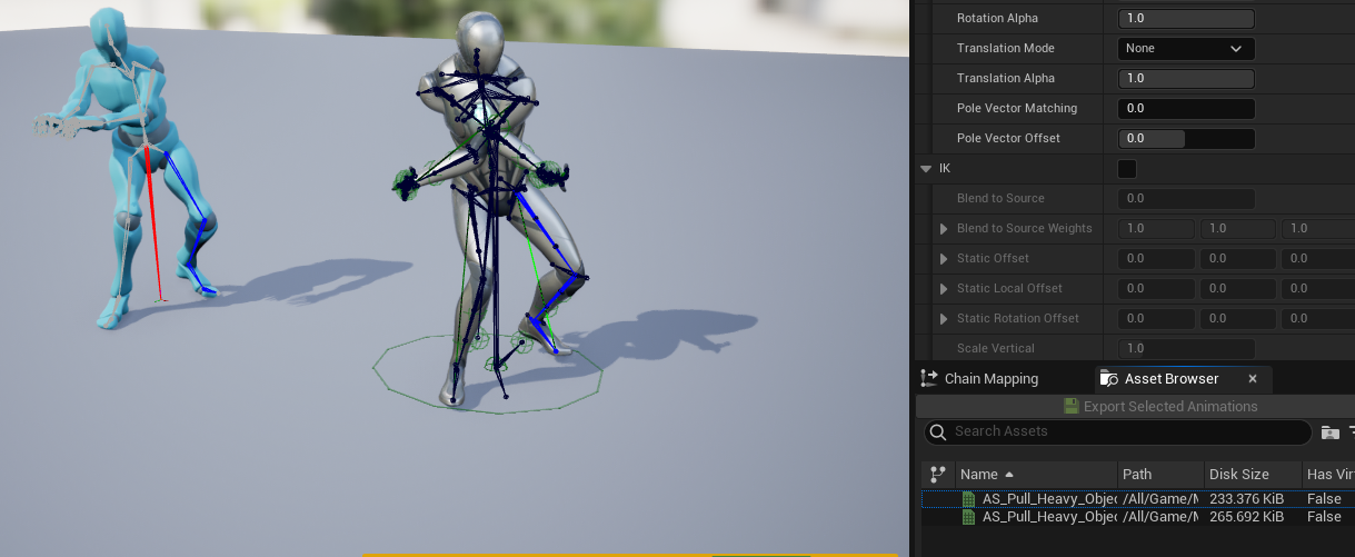 - 위 오른쪽 사진을 보면, 두개의 스켈레톤 에셋을 볼 수 있다.